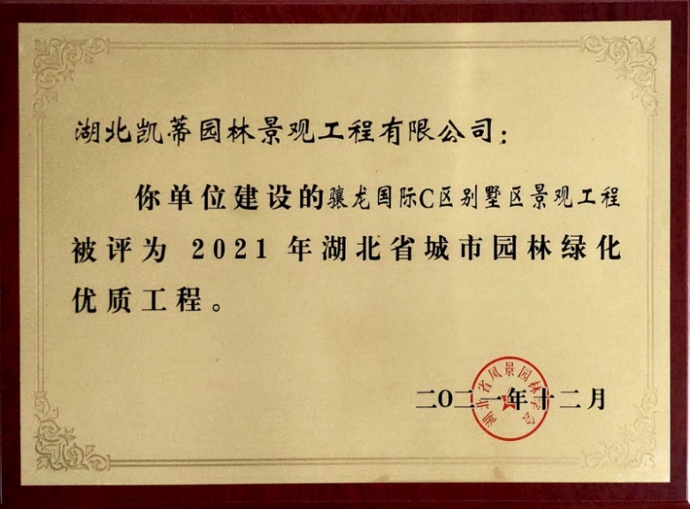 2021年湖北省城市園林綠化優質工程獎